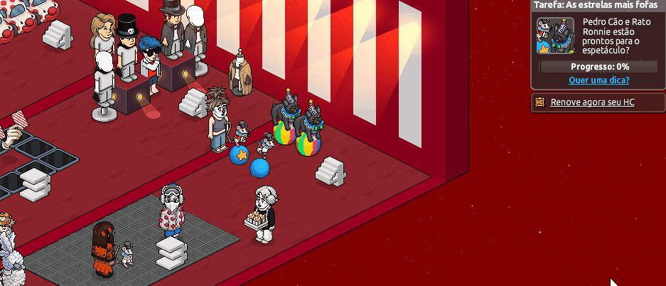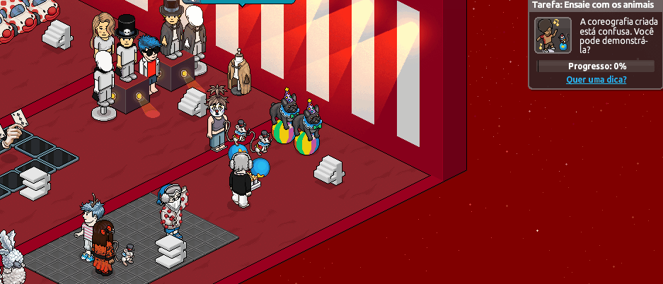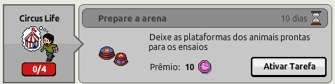 Desde o início de agosto, o Habbo está em clima circense, oferecendo uma variedade de coleções de mobis, itens de vestir, emblemas e tarefas para toda a comunidade brasileira e portuguesa. Na noite desta quarta-feira (21/08), o Habbo Hotel disponibilizou a quarta tarefa circense. As tarefas anteriores ainda estão acessíveis ao público. Confira abaixo como completar a nova missão e garantir suas recompensas!