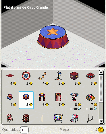 2° Passo / Tarefa 1: : Você deverá comprar Plataforma de Circo Grande e a Plataforma de Circo Pequena no catálogo para concluir essa tarefa, as mesmas estão custando 5c a grande e 4c a pequena.