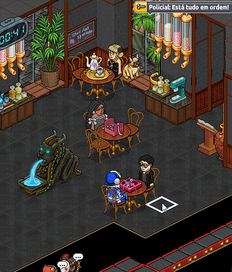3ª Etapa: Vá rapidamente até uma das mesas onde esteja sentado um "BOT convidado", posicione-se à frente dele e sente-se. Aguarde até que o policial apareça na porta e solte a frase: "Está tudo em ordem" para seguir para a próxima etapa.