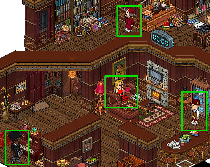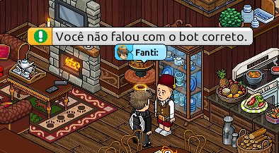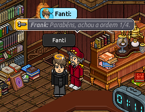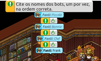 4° PASSO: Quatro bots estão espalhados pelo quarto. Seu objetivo será acertar a sequência correta, e para isso, você deverá ir até cada um deles e dizer algo - mesmo que seja um balão em branco. Cada bot dirá se você está indo na ordem certa ou não.